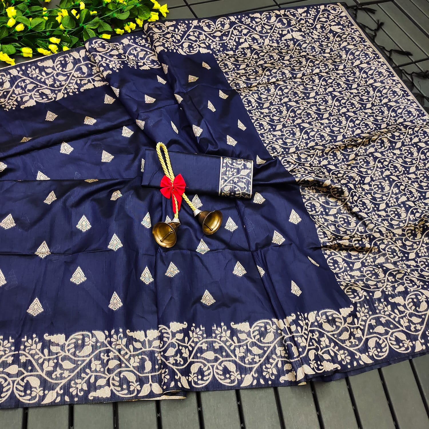 Banglori Handloom raw silk saree with all over weaving Butties and weaving pallu with running blouse piece