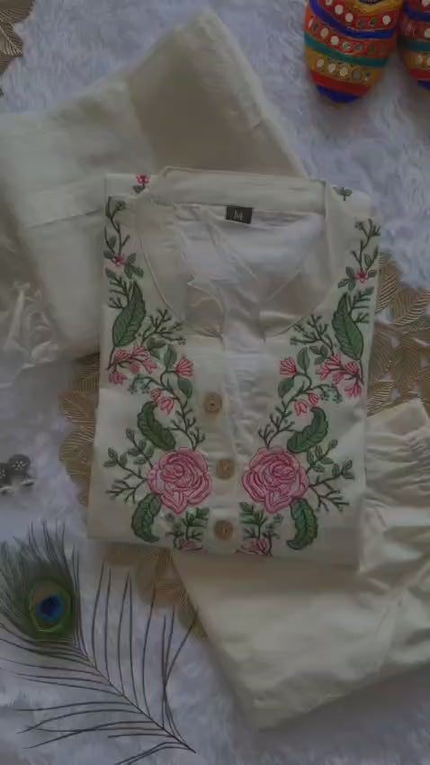 Kurti - Khadi Cotton with Beautiful Embroidery