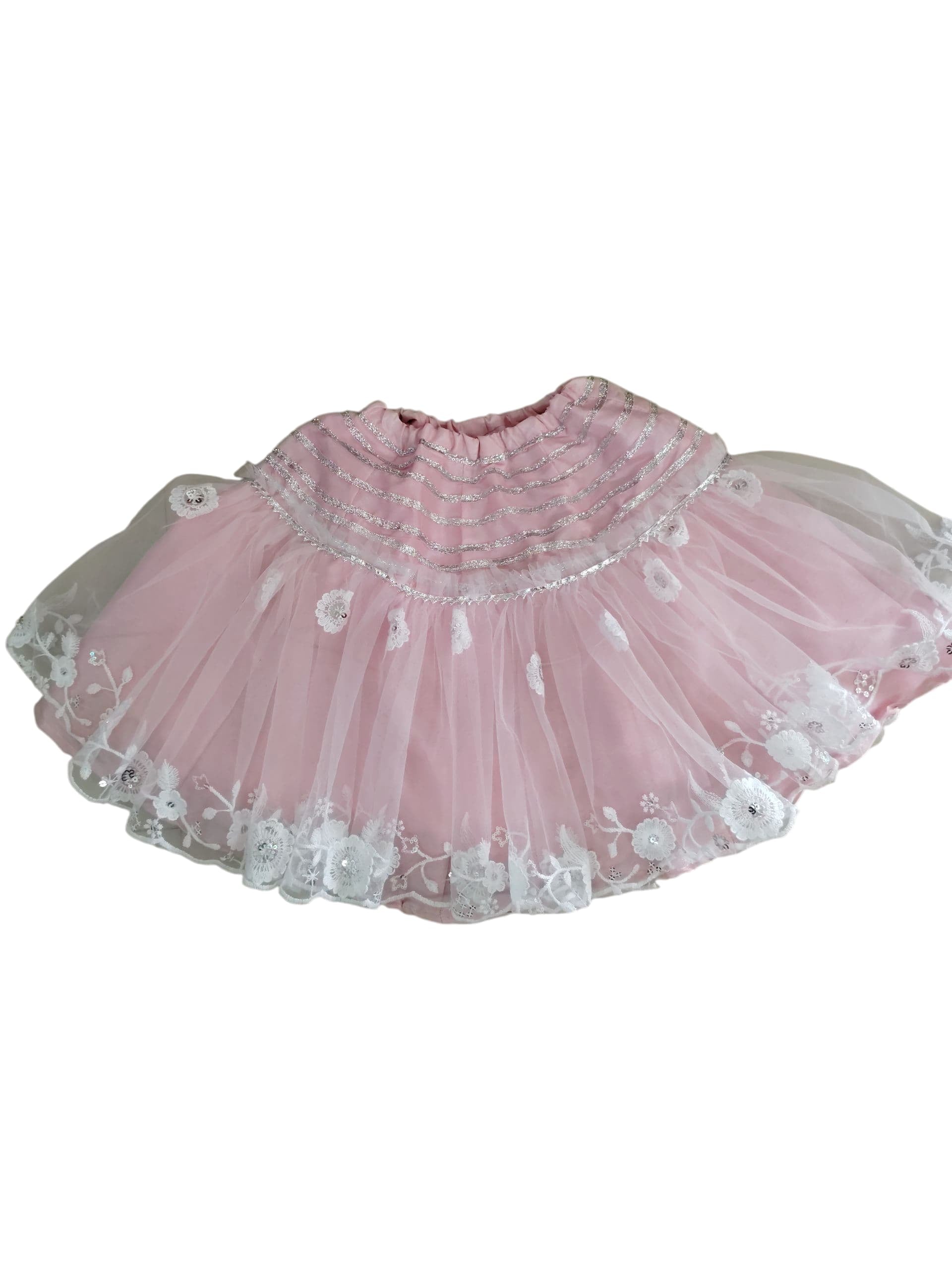 Silk Cotton Skirt for Kids with Designer Net cloth and cotton lining