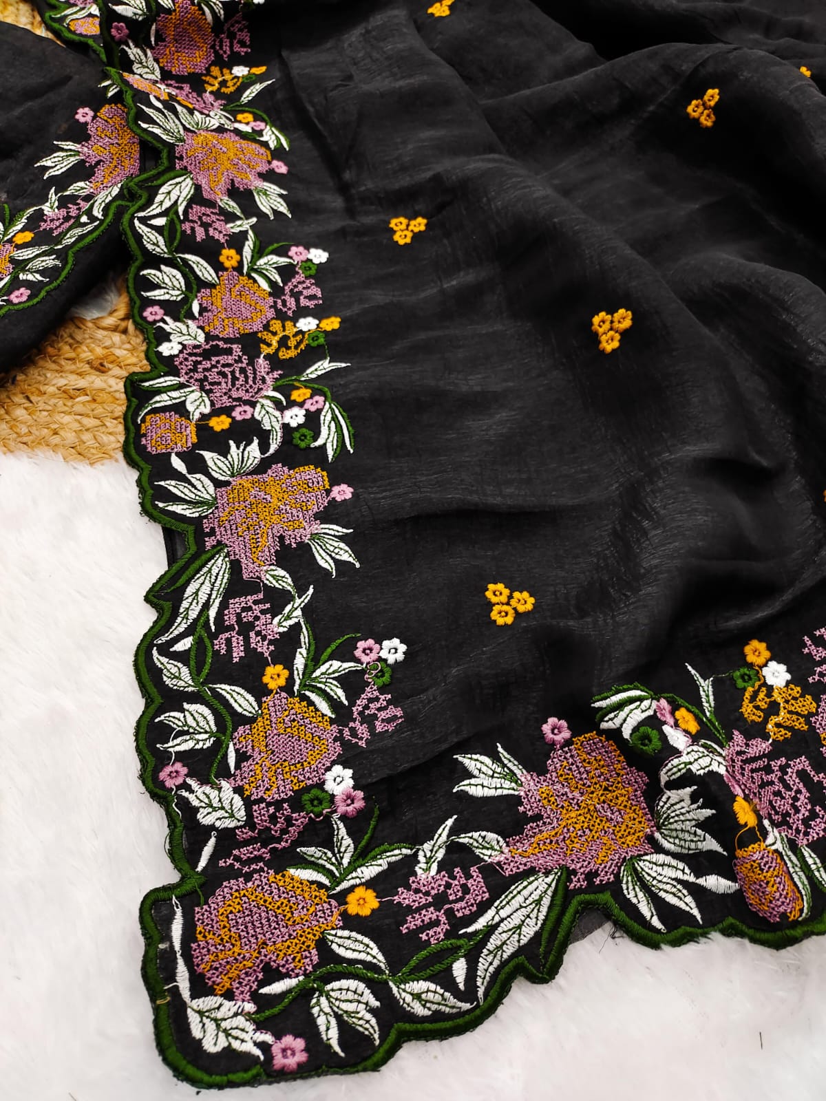Designer Saree with Heavy Embroidery & Cutwork Border