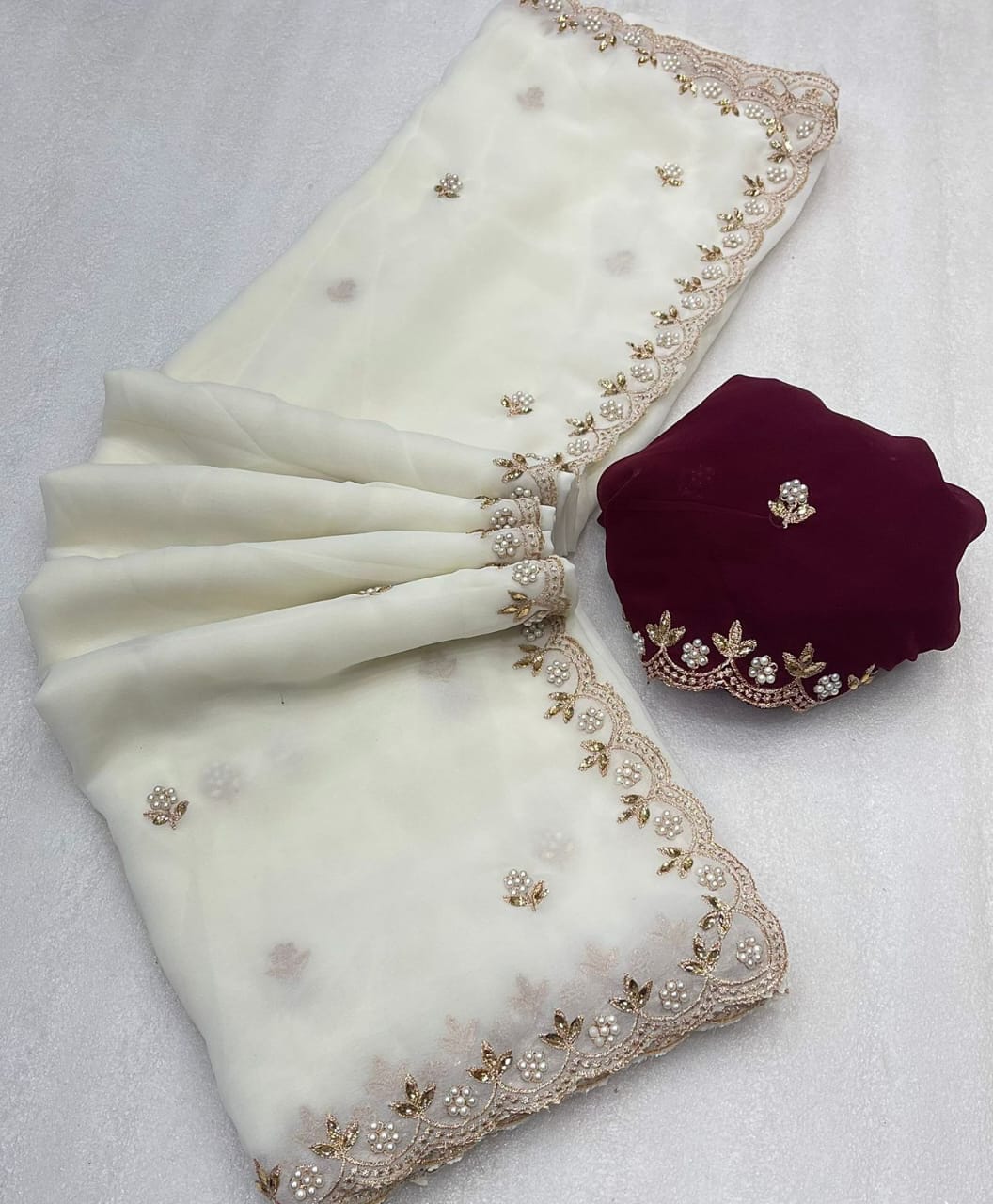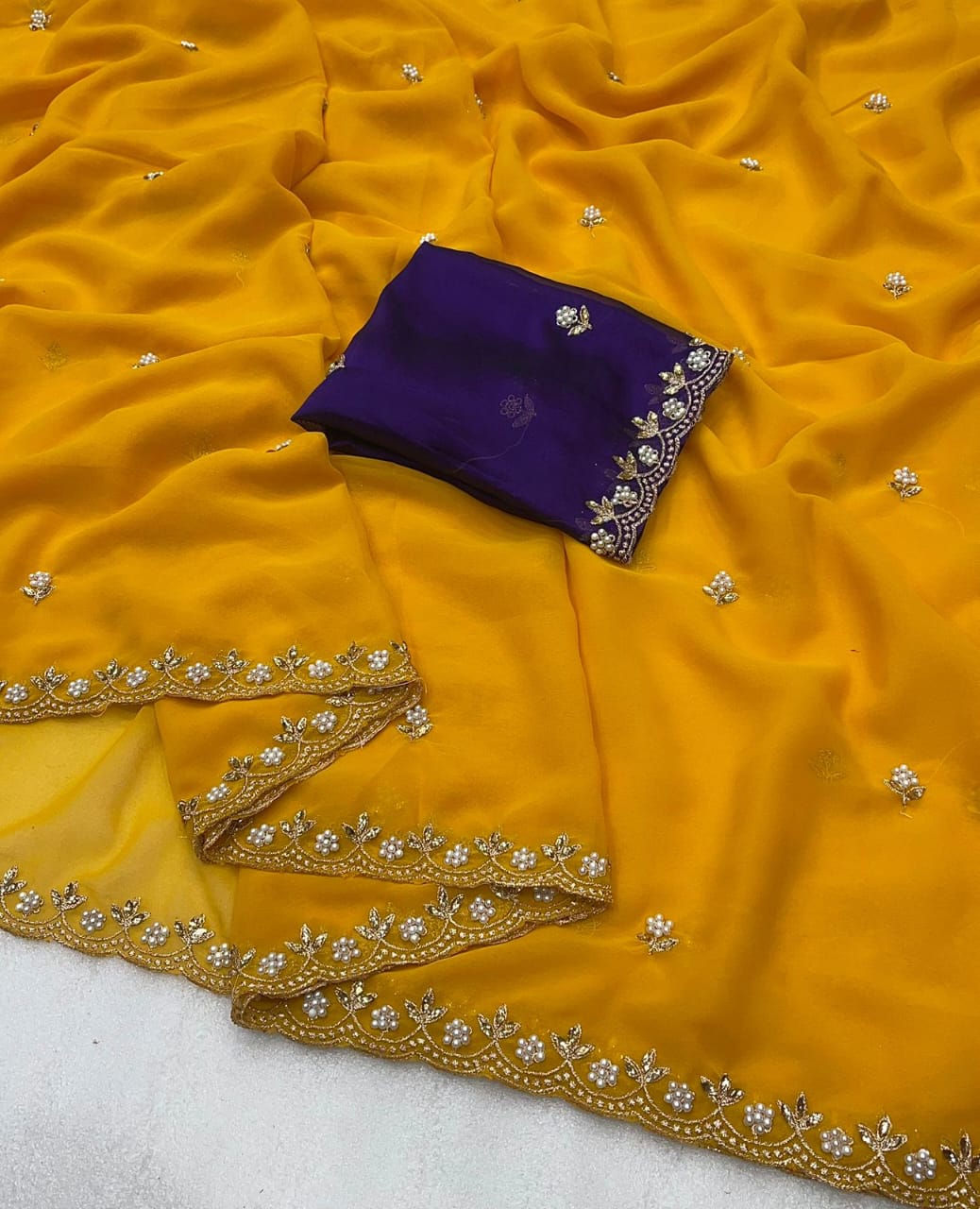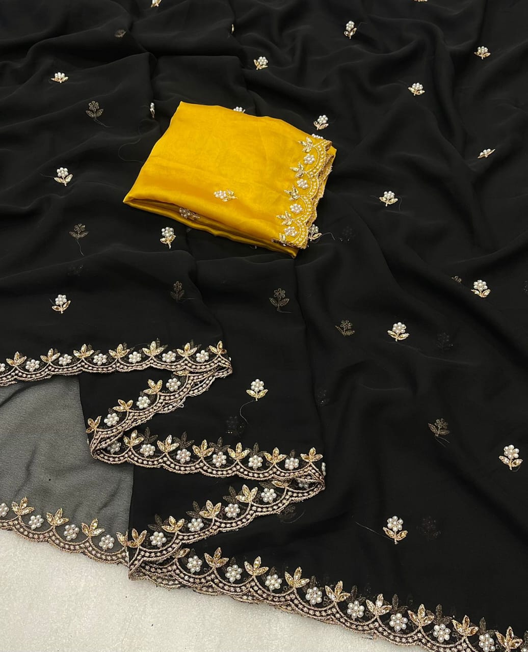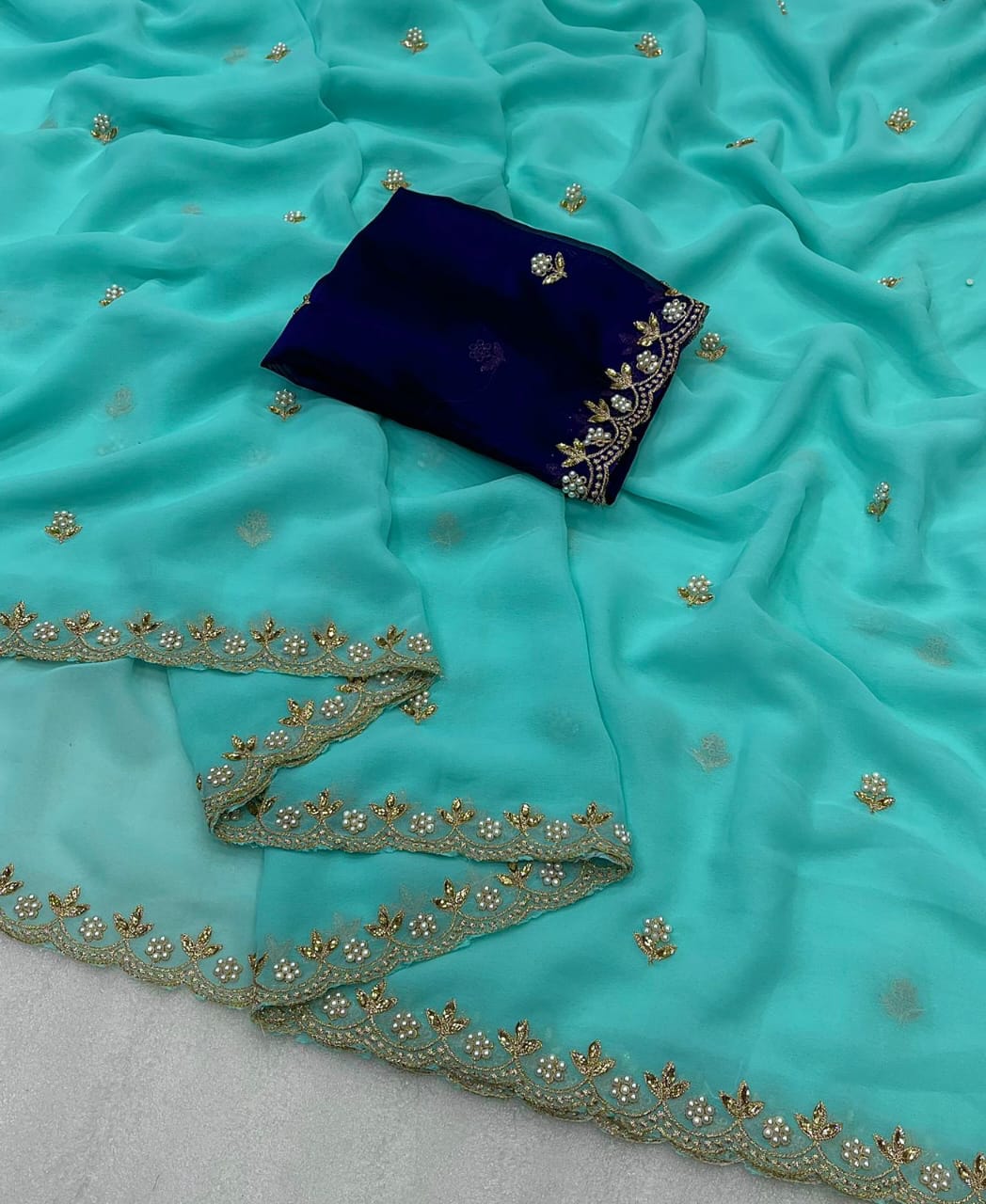 Georgette Saree With Embroidery Blouse Piece With Beads and Embroidery Work