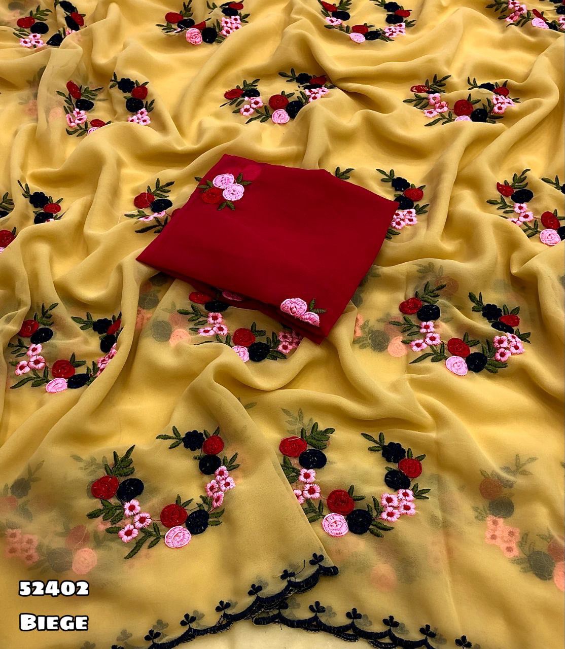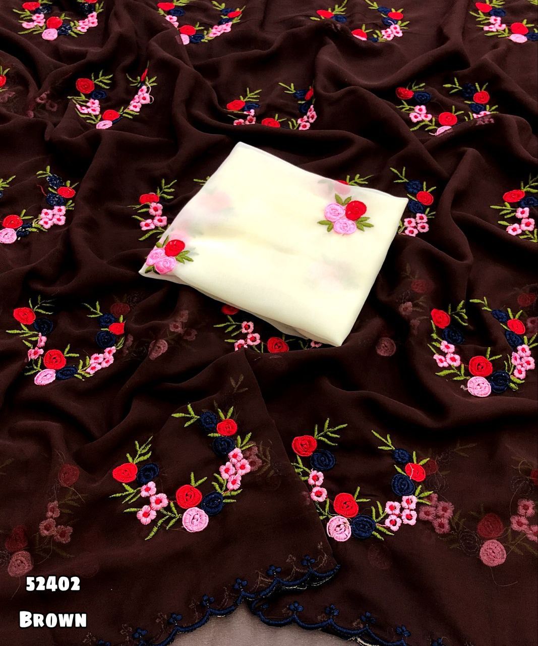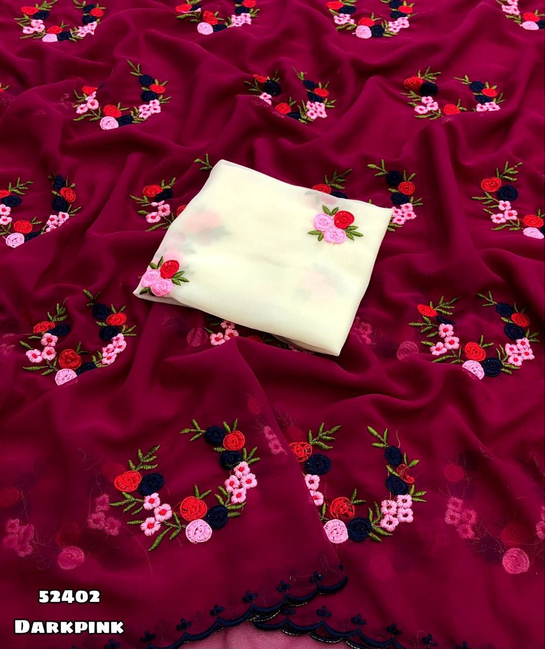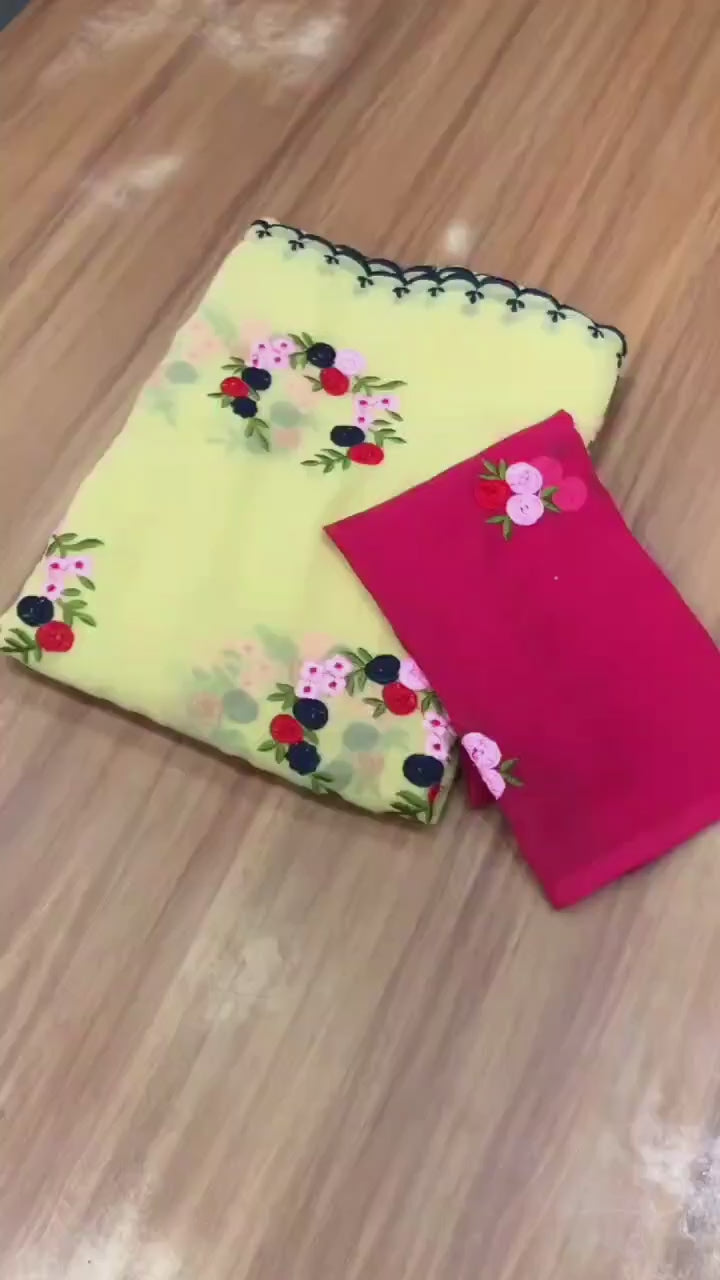Launching New Georgette Saree with embroidery work butta comes with scalloped border