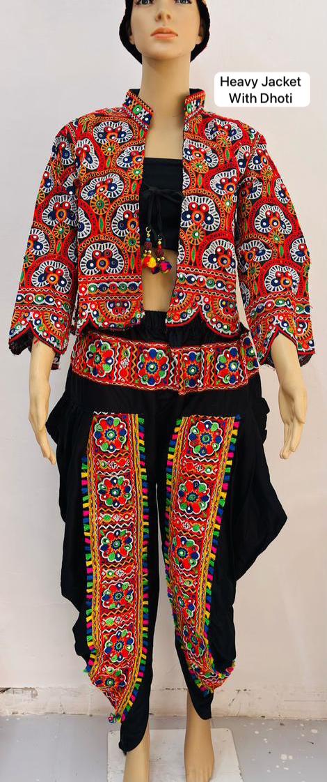 Heavy Rayon Traditional Embroidery wool Work Dhoti With Designer Jacket and Blouse Different ConceptÂ