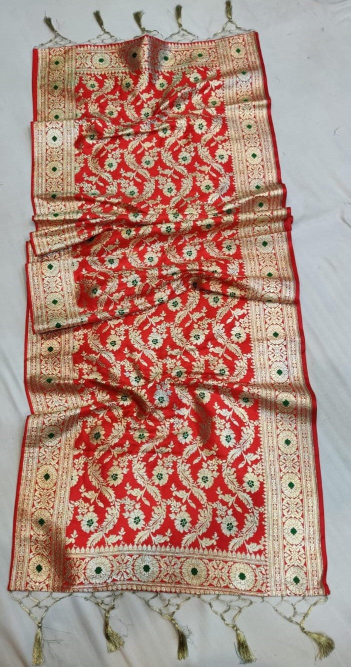 Celebrate the eternal bond of love this Karwa Chauth with our exquisite Banarasi Silk Dupatta, crafted to add timeless elegance to your festive look. 🌸