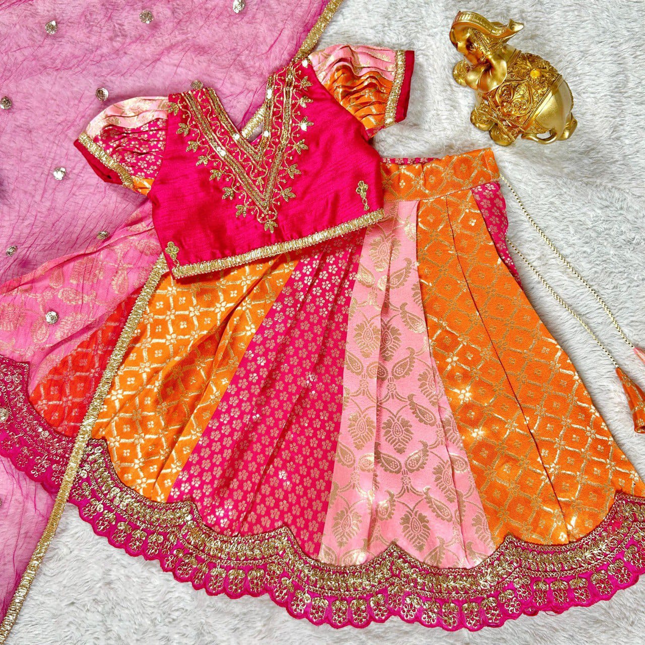 Dress your little one in timeless elegance with our multi-color handwoven lehenga choli set, designed with love and crafted to perfection. This festive-ready outfit features rich colors, detailed embroidery, and soft inner linings—perfect for weddings, birthdays, traditional functions, and festive occasions.