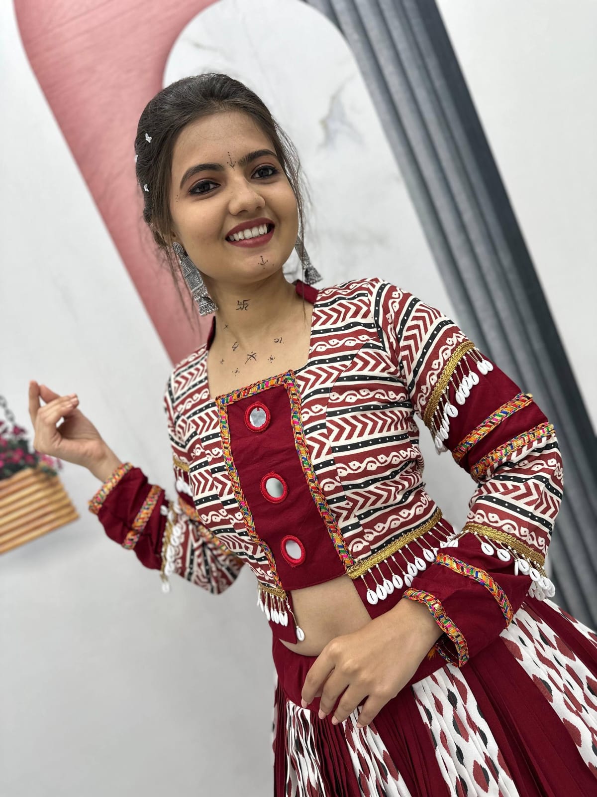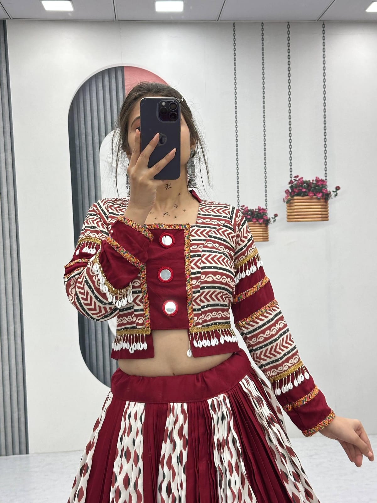 - Work: Traditional Ajrakh Print with Real Mirror Embellishments