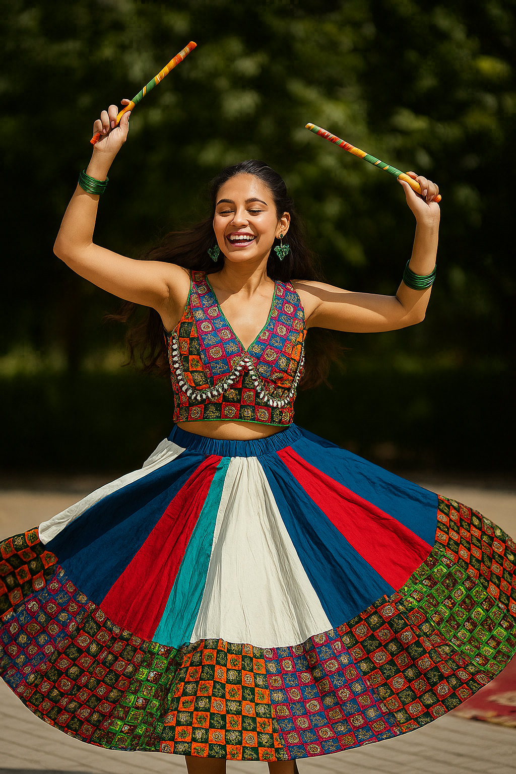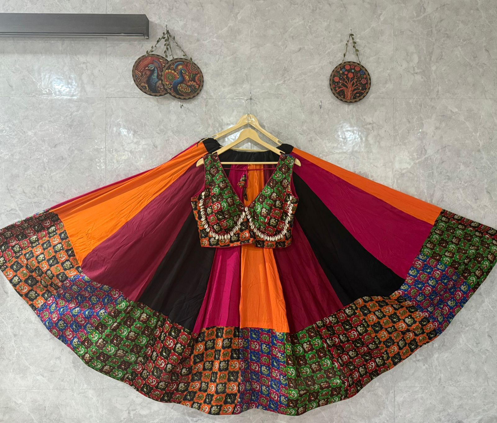 Premium Concept Rayon Cotton Multi Color Kali Pattern With Jaipuri Figure Multi Print Skirt With Designer Real Kodi Readymade Blouse
