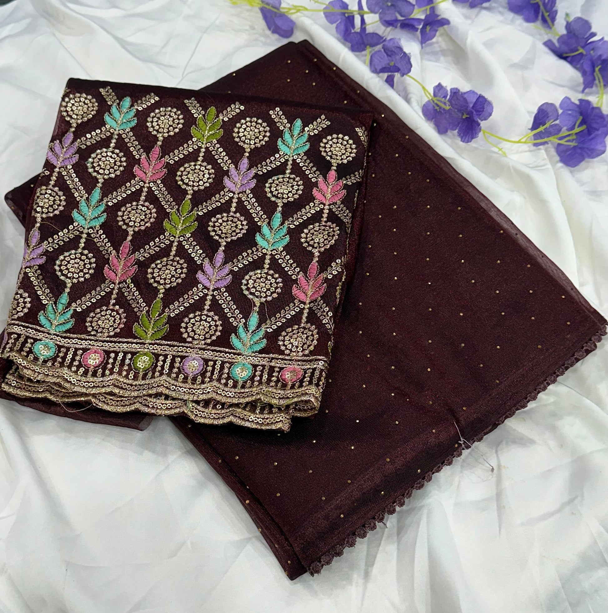 Introducing a fresh and luxurious addition to your ethnic wardrobe — our Newly Launched Cranberry Chiffon Saree is a masterpiece of elegance and subtle sparkle. Crafted for the modern woman who loves timeless tradition with a touch of glamour, this saree is ideal for weddings, parties, festive gatherings, and evening occasions.