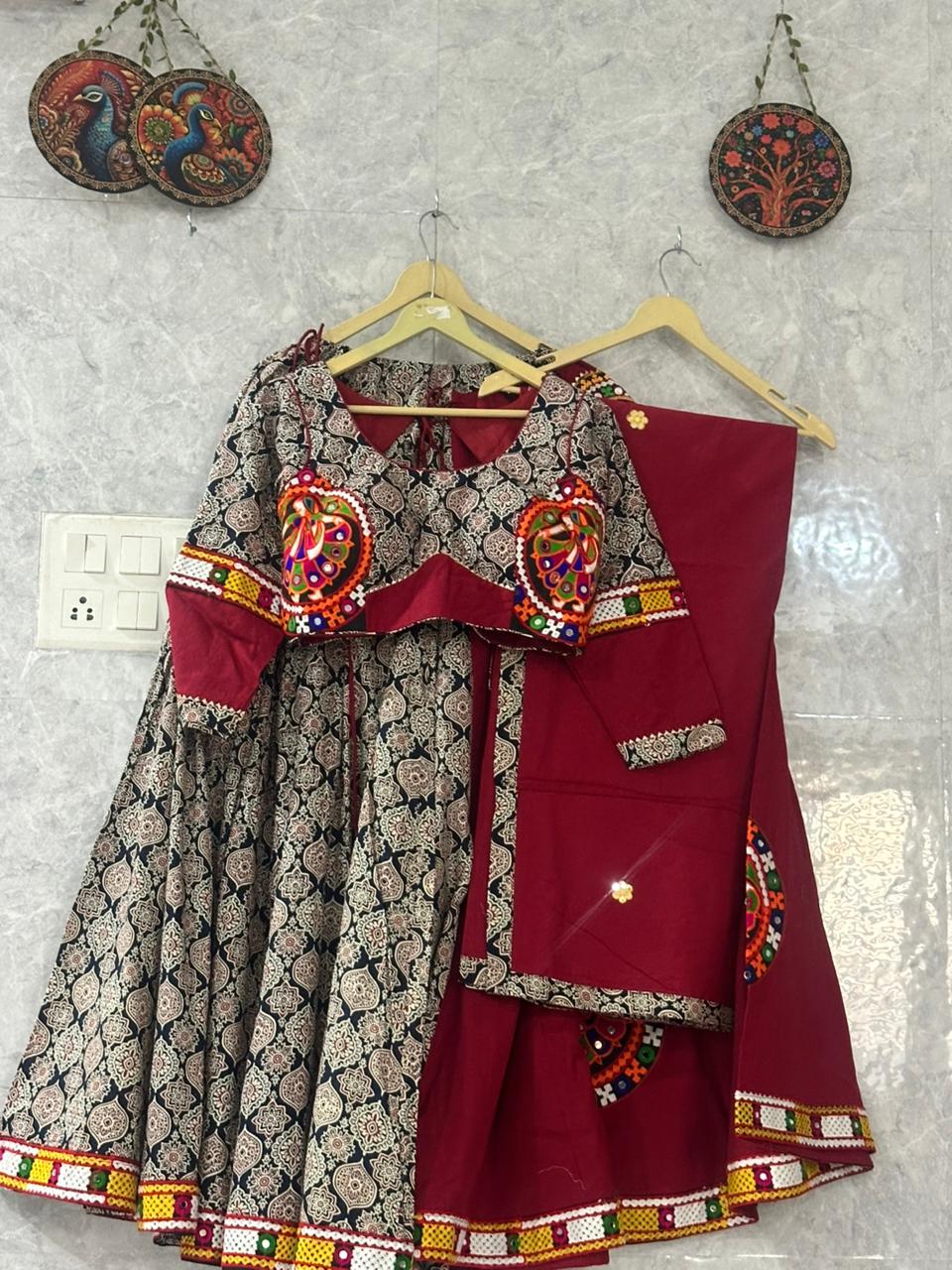 Premium Ajrakh Cotton With Double Layer Half Traditional Work Butta Concept Heavy Chaniya Choli