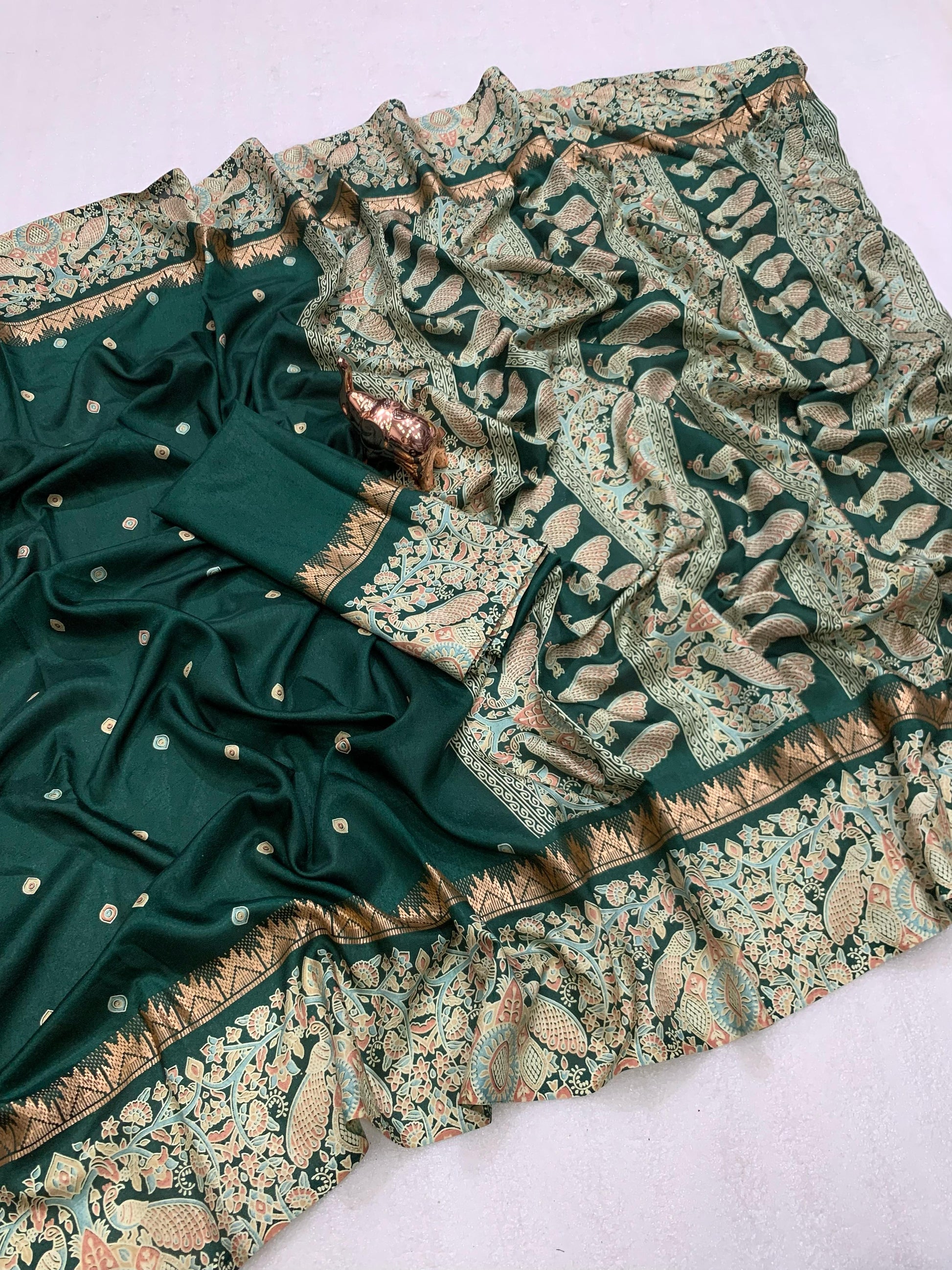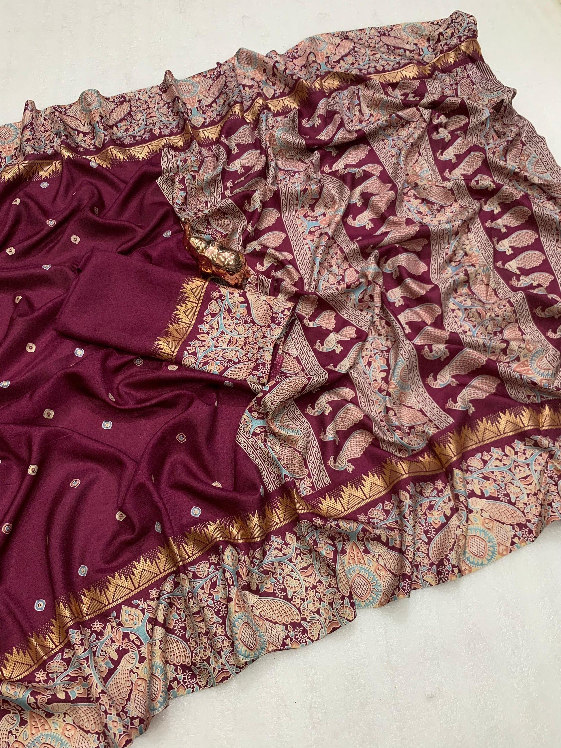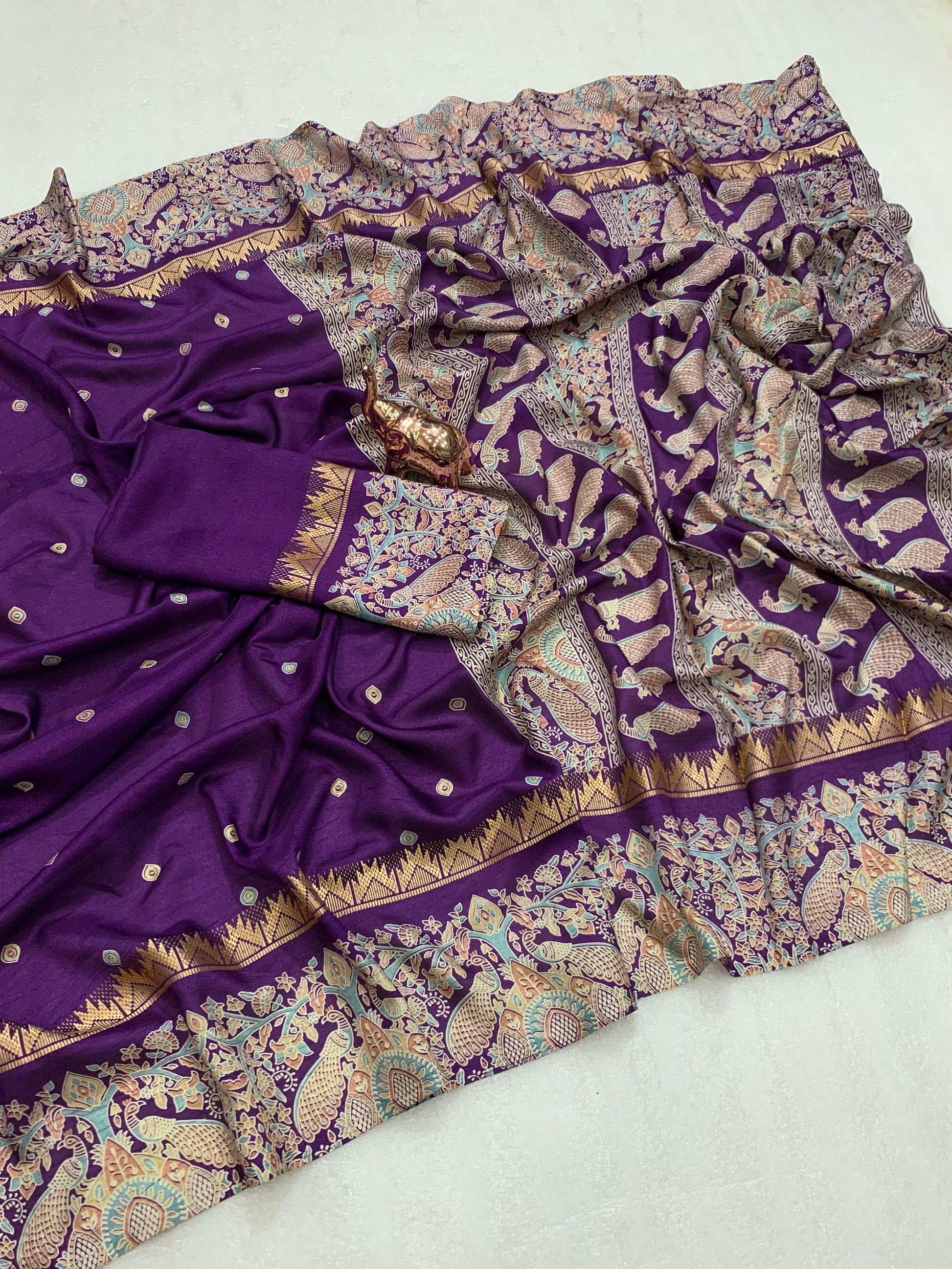Pure soft Tusser Batik Peacock Printed saree with Rich Pallu & Original Viscose weaving Border Saree