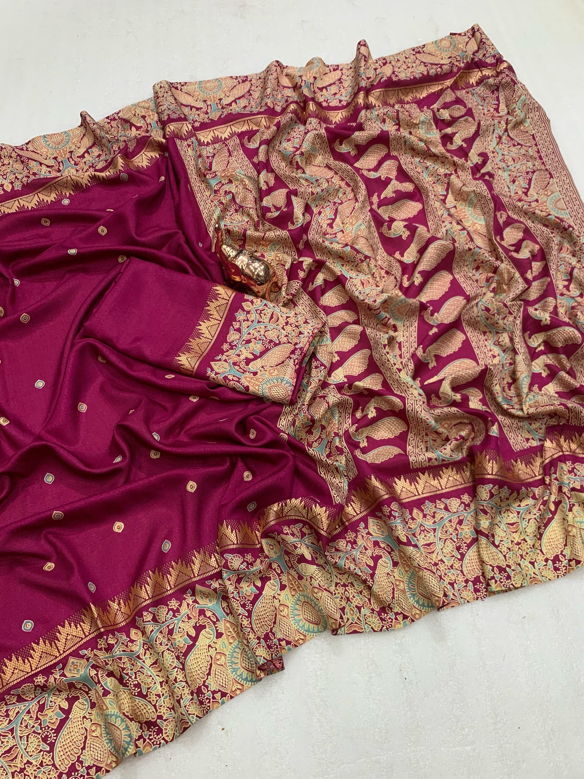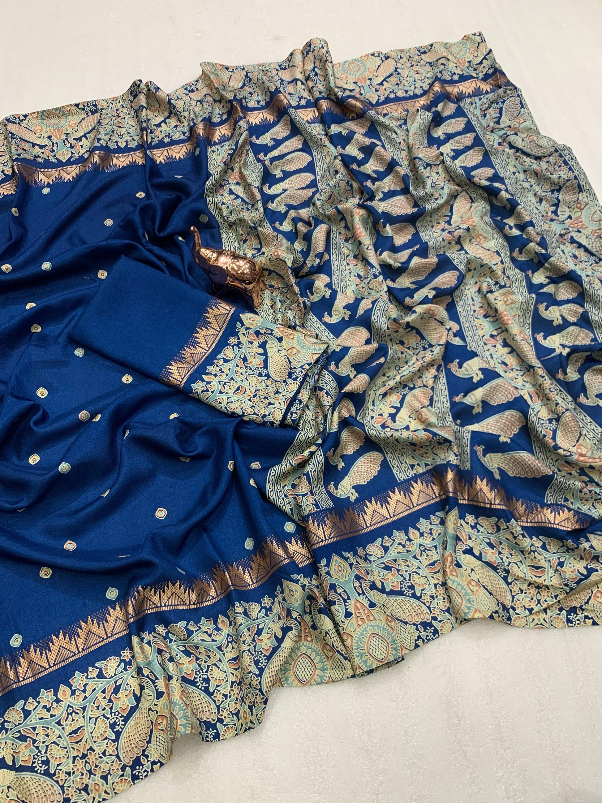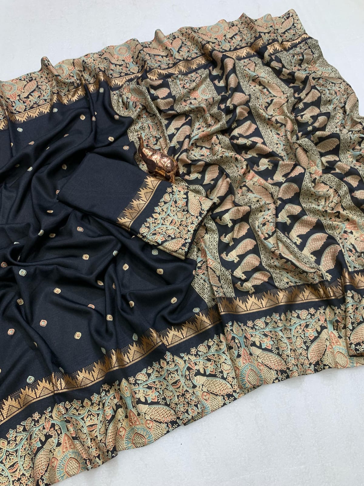 Pure soft Tusser Batik Peacock Printed saree with Rich Pallu & Original Viscose weaving Border Saree