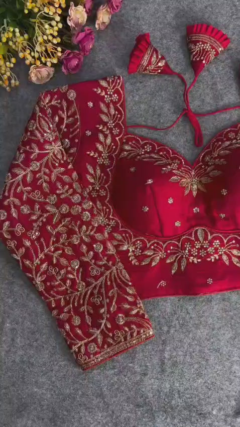 Pure Vichitra Silk Heavy Zari Embroidery Blouse