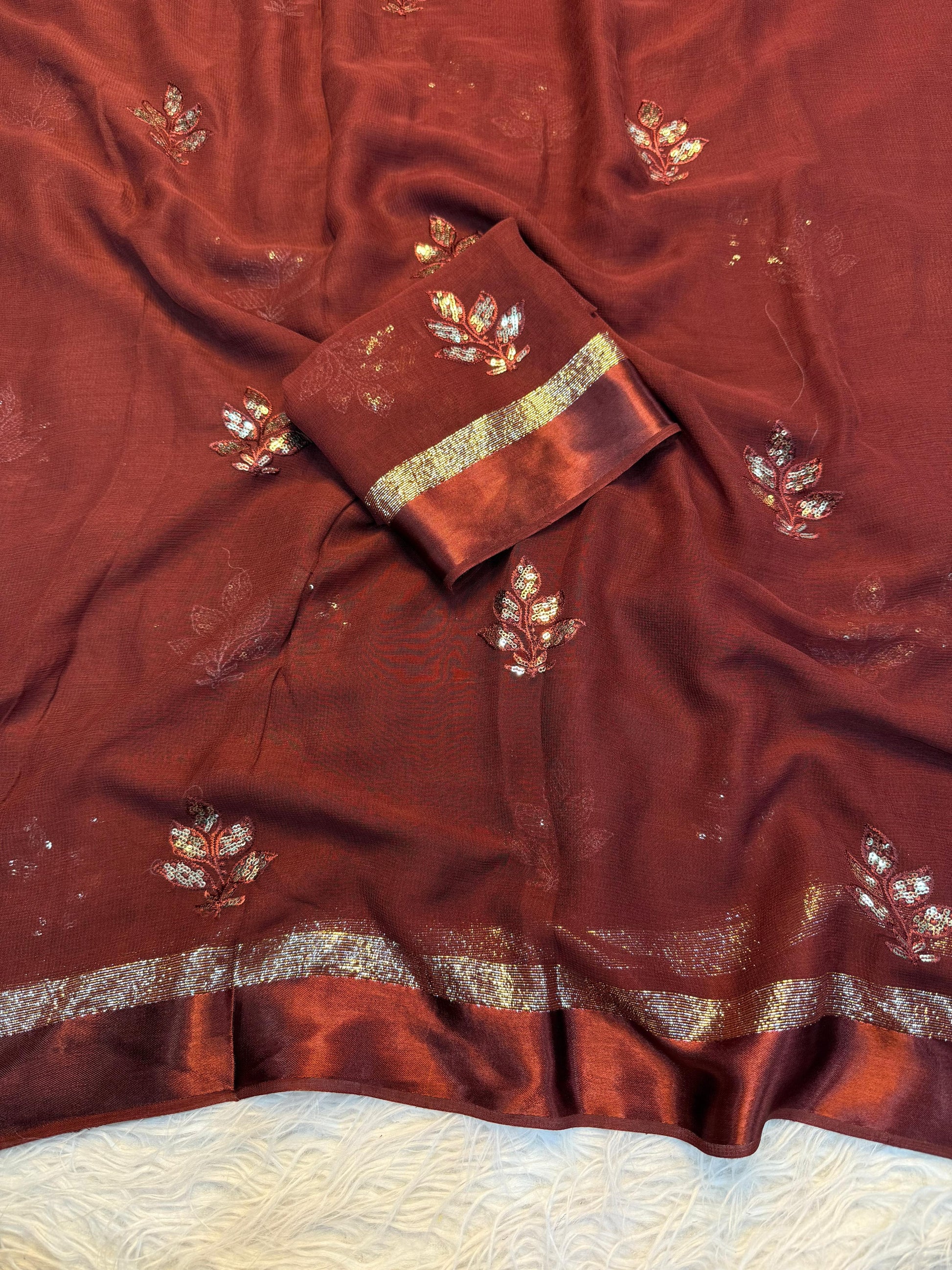 Pure viscose georgette saree with embroidery butta work saree with embroidery work blouse design