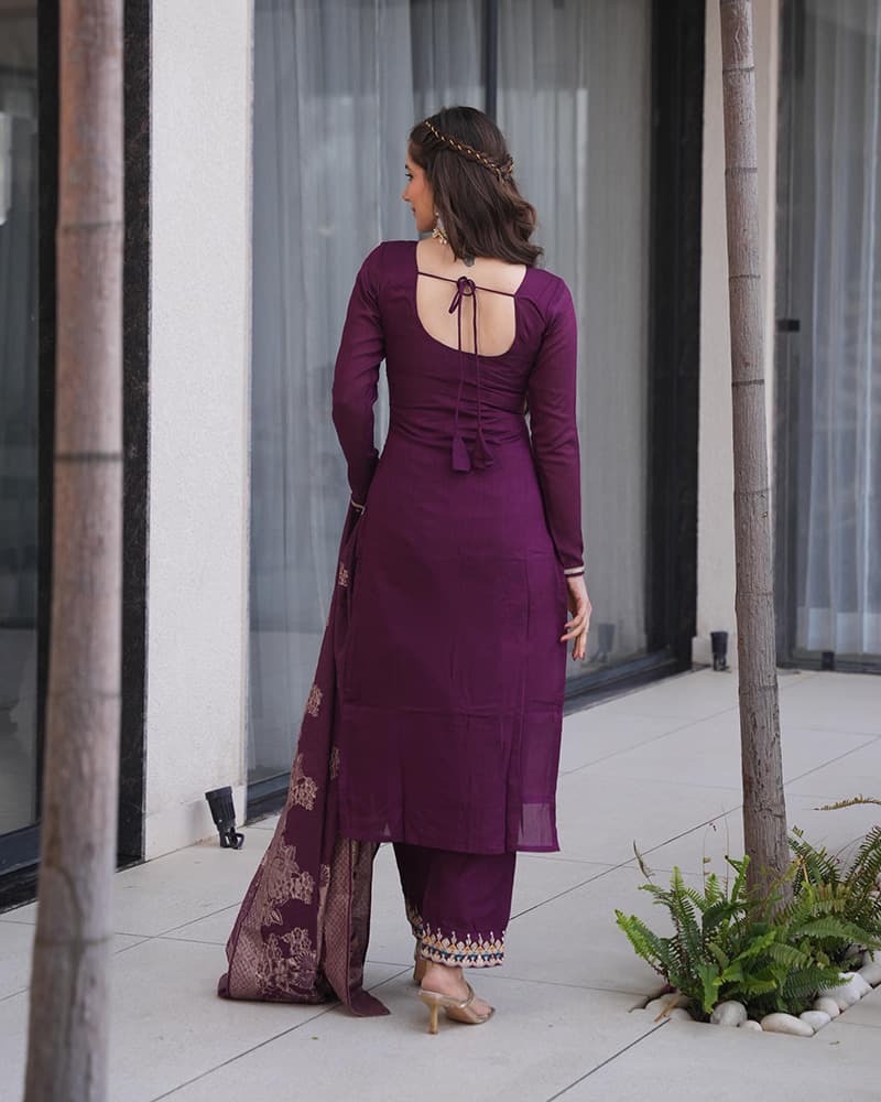 Presenting Our Wine Color Roman Silk Three Piece Anarkali Suit